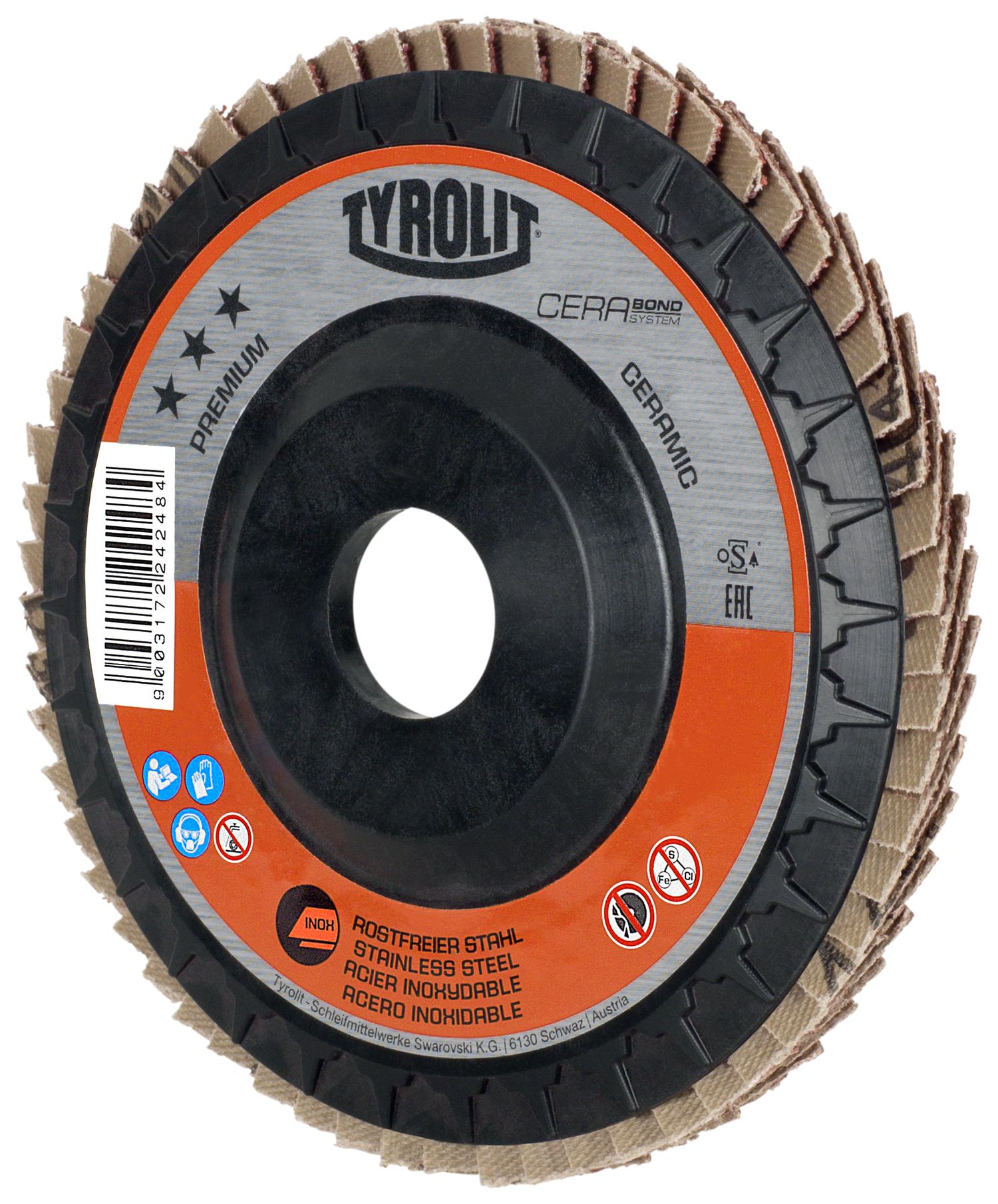 Ein einzigartiges Bindungssystem kombiniert mit einem leistungsstarken PREMIUM Leinen bietet dem Anwender mehr Aggressivität. Diese Fächerscheibe ist speziell für Edelstähle und anspruchsvolle Schleifanwendungen geeignet. Zusätzlich verhindert das einzigartige Bindungssystem den vorzeitigen Ausbruch der Körnung und führt zu einer langen Lebensdauer des Produktes. Mit einer zusätzlichen TOP SIZE Beschichtung wird ein kühlerer Schliff ermöglicht, der zu einer längeren Werkzeuglebensdauer und reduzierten Verfärbungen der Werkstückoberfläche führt.